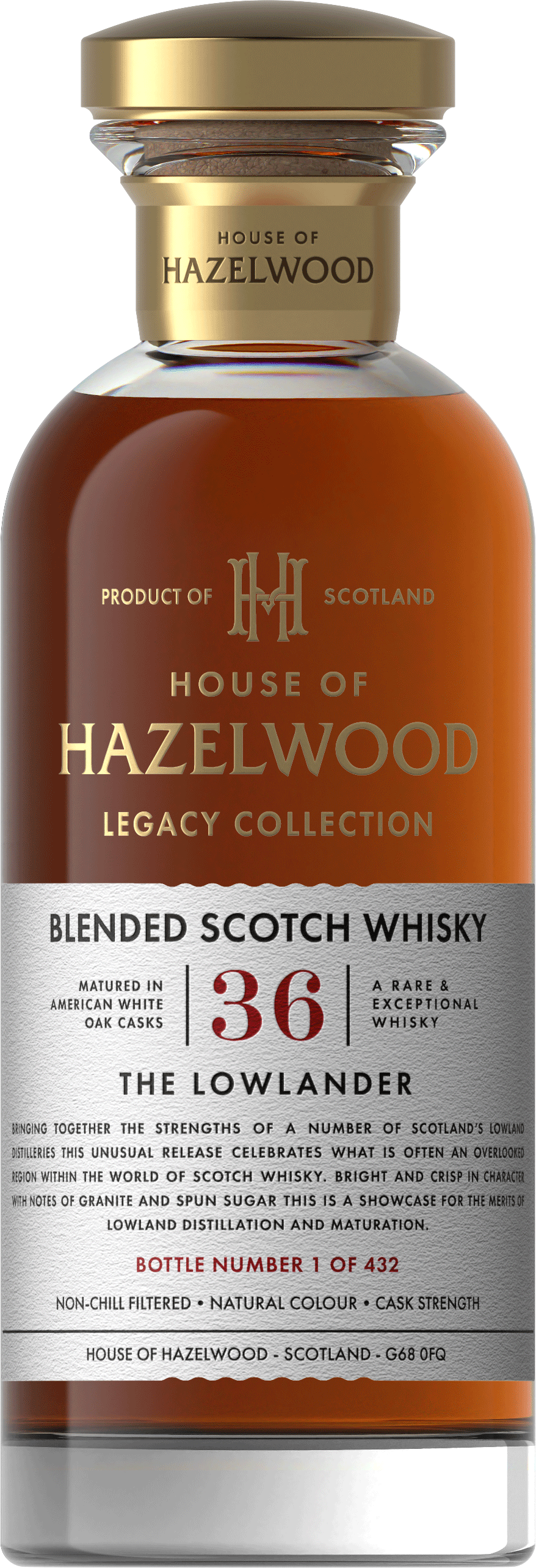 An exceptional, unusual blend and a showcase for the merits of Lowland distillation and maturation. Packaged in a hand-labelled, individually-numbered decanter with accompanying gift box.